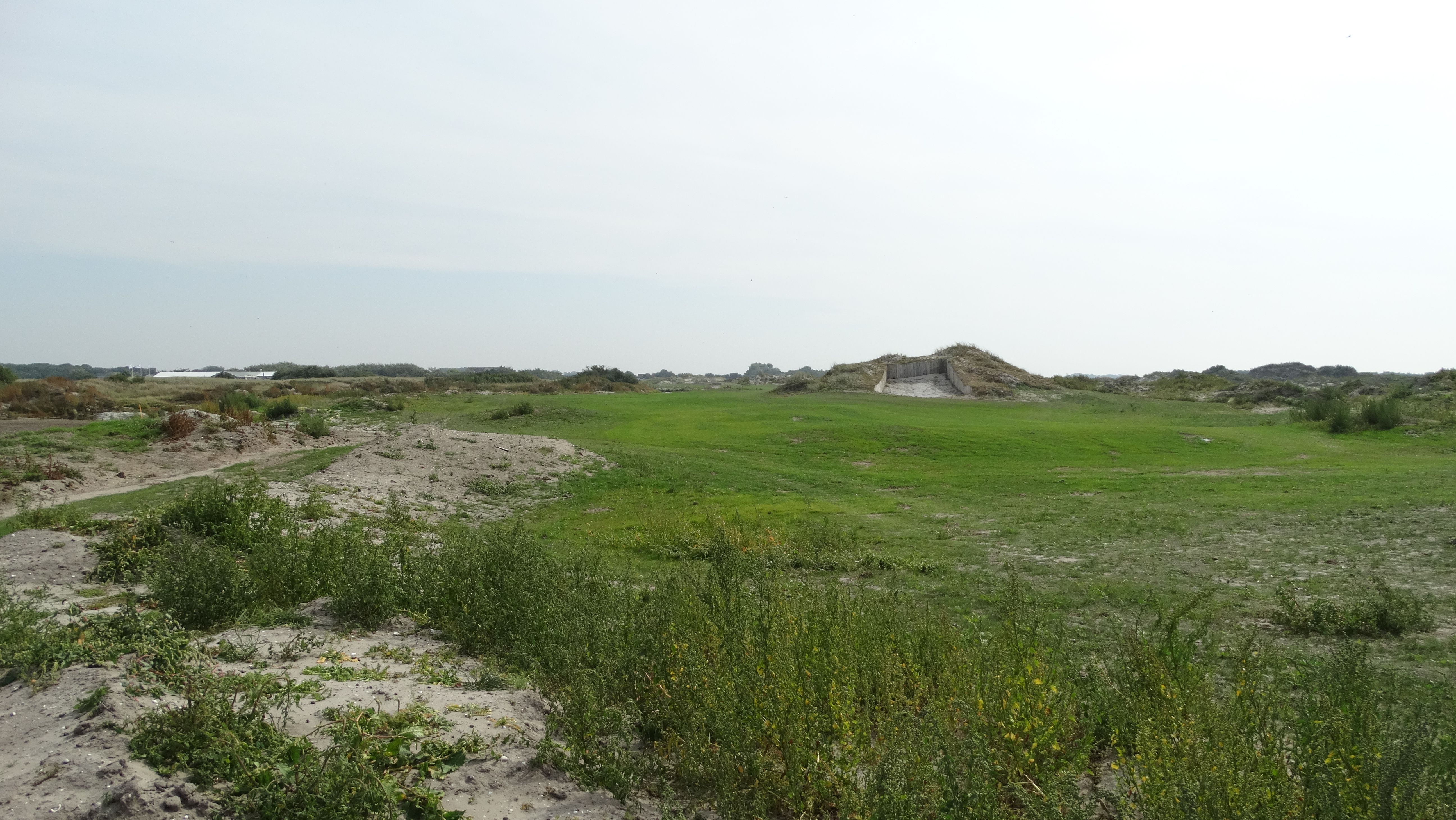 Op hole 18 van de Texelse heeft architect Alan Rijks in een duin (een artificiële duin overigens) een megabunker laten maken. De hindernis is geïnspireerd op de enorme Himalaya-bunker op Royal St. George’s.