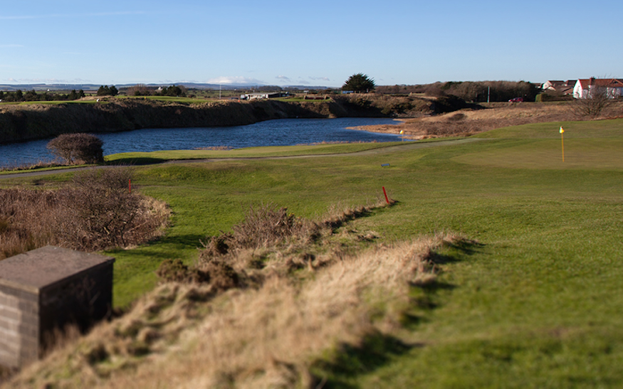 Ronde 1: Seahouses. Hoogtepunt is hole 15: ‘the Cove’. Stroke 18 op de scorekaart maar wel behorend tot de twintig moeilijkste holes van Europa!