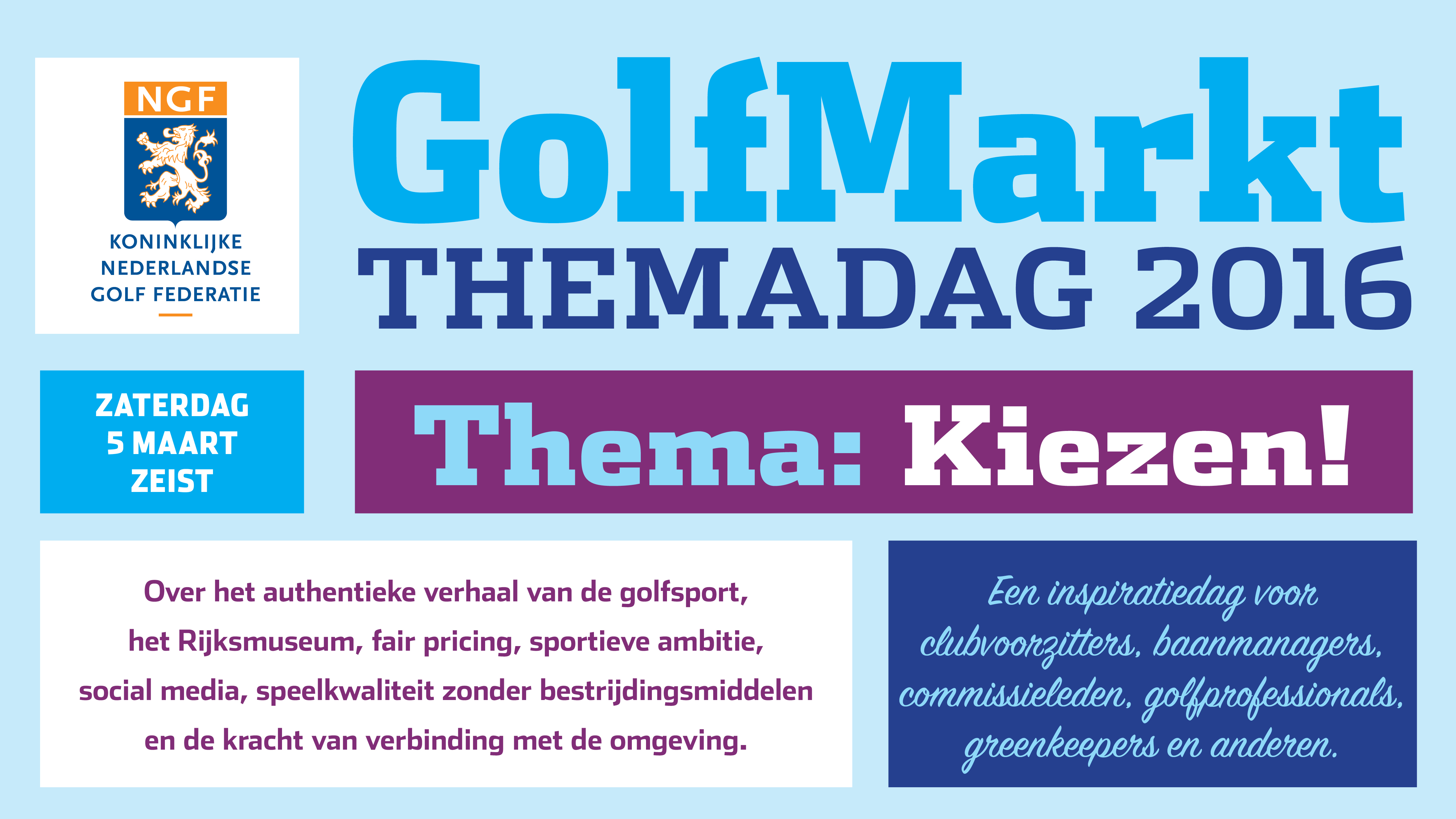 Na zaterdag 5 maart kun je met de input direct aan de slag op de golfclub, golfbaan of golfschool. De kosten zijn € 25,- per persoon, inclusief lunch en drankjes.