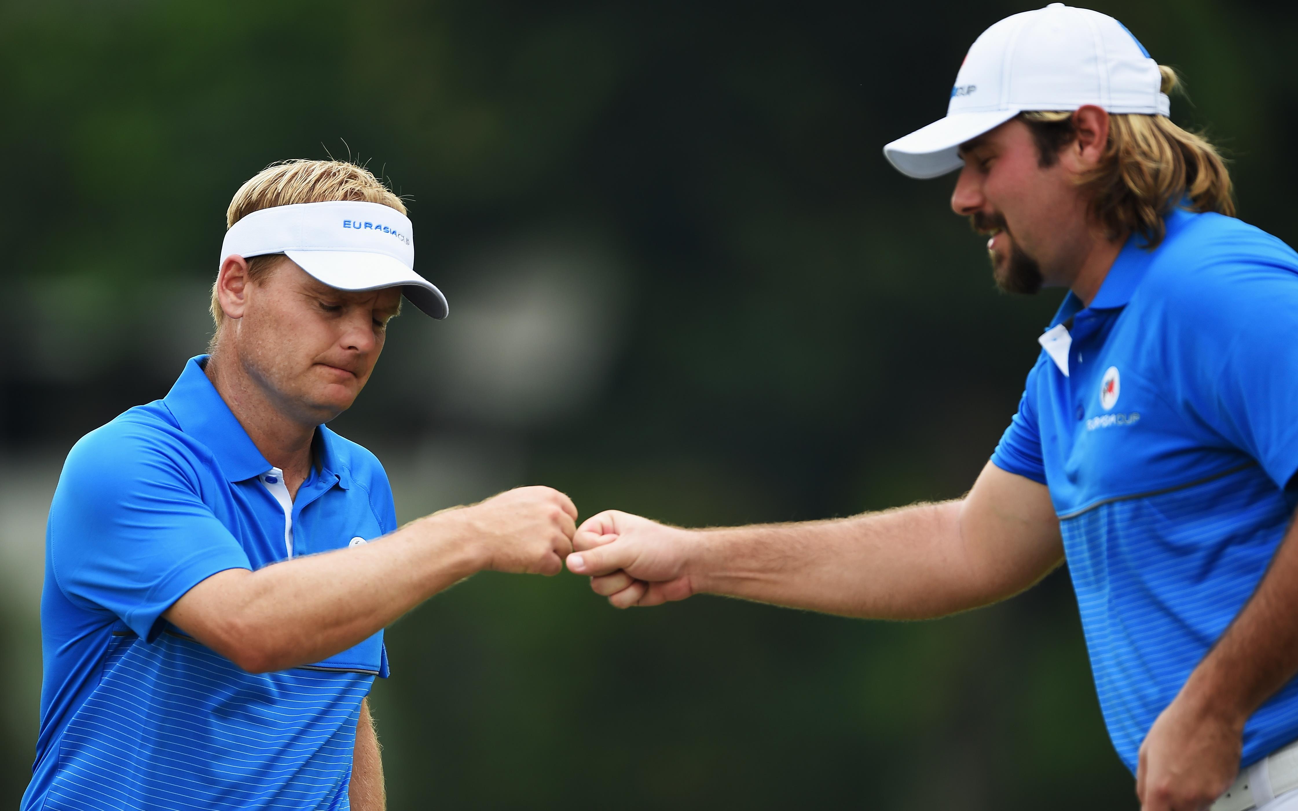 Zaterdag worden op de tweede dag zes foursomes gespeeld en zondag eindigt de Eurasia Cup met twaalf singles.
