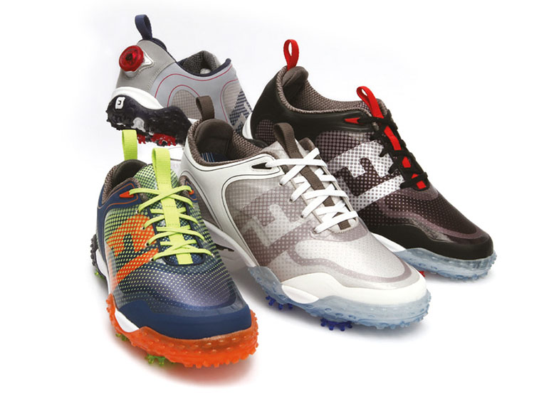 De nieuwe schoenen zullen beschikbaar zijn in vijf verschillende uitvoeringen, waarbij het prominente FJ-logo aan de zijkant opvalt en we bij één variant fel oranje, groene en blauwe kleuren aantreffen. Bij de overige modellen wordt gekozen voor een wat meer ingetogen kleurstelling (White/Grey/Charcoal, Black/White/Grey, Grey/Green/Navy, Grey/Navy/Berry (Boa)). Overigens wel met fel gekleurde softspikes.