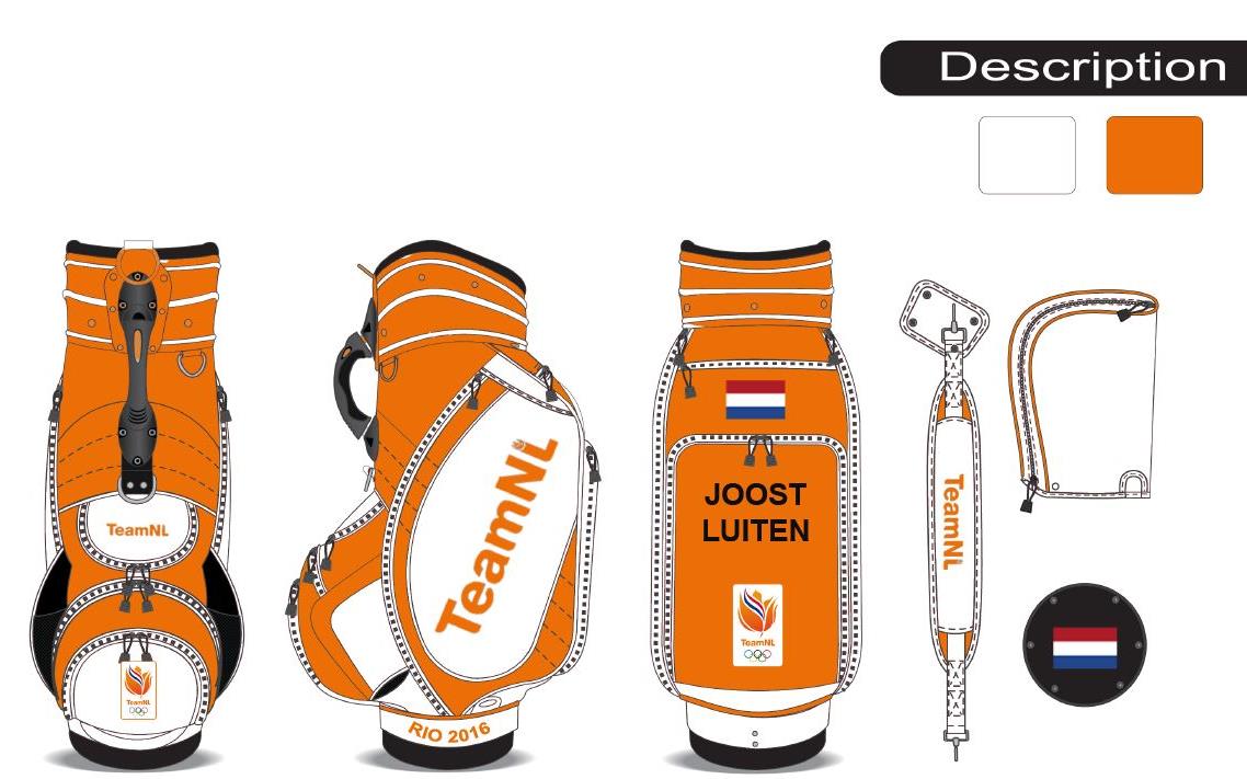 Speciaal voor de Spelen is een oranje-witte tas gefabriceerd met daarop de naam van Joost Luiten en het speciale TeamNL-logo. ‘TeamNL’ staat ook groot op de zijkant van de tas en de draagband. Bij het ontwerp hebben Joost Luiten en Pieter Bijnen van de NGF voor de voornaamste inbreng gezorgd.