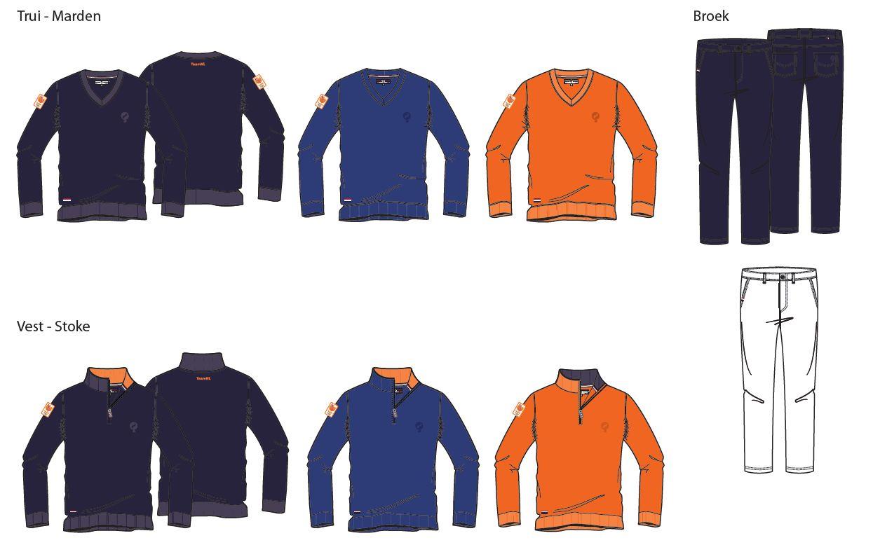 Off course, dus bijvoorbeeld in het Olympisch dorp en tijdens de openings- en sluitingsceremonie, dragen Nederlandse sporters de kleding van ASICS, de Japanse sponsor van NOC*NSF. Maar tijdens de oefenronden en het kampioenschap is Luiten getooid in shirts, sweaters, jacks en pantalons die zijn vervaardigd door Quick, zijn eigen kledingsponsor. Ook in andere sporten wordt de wedstrijdoutfit door ‘eigen’ fabrikanten verzorgd. Zo staat er een logo van Adidas op de shirts van de Nederlandse hockeyteams.