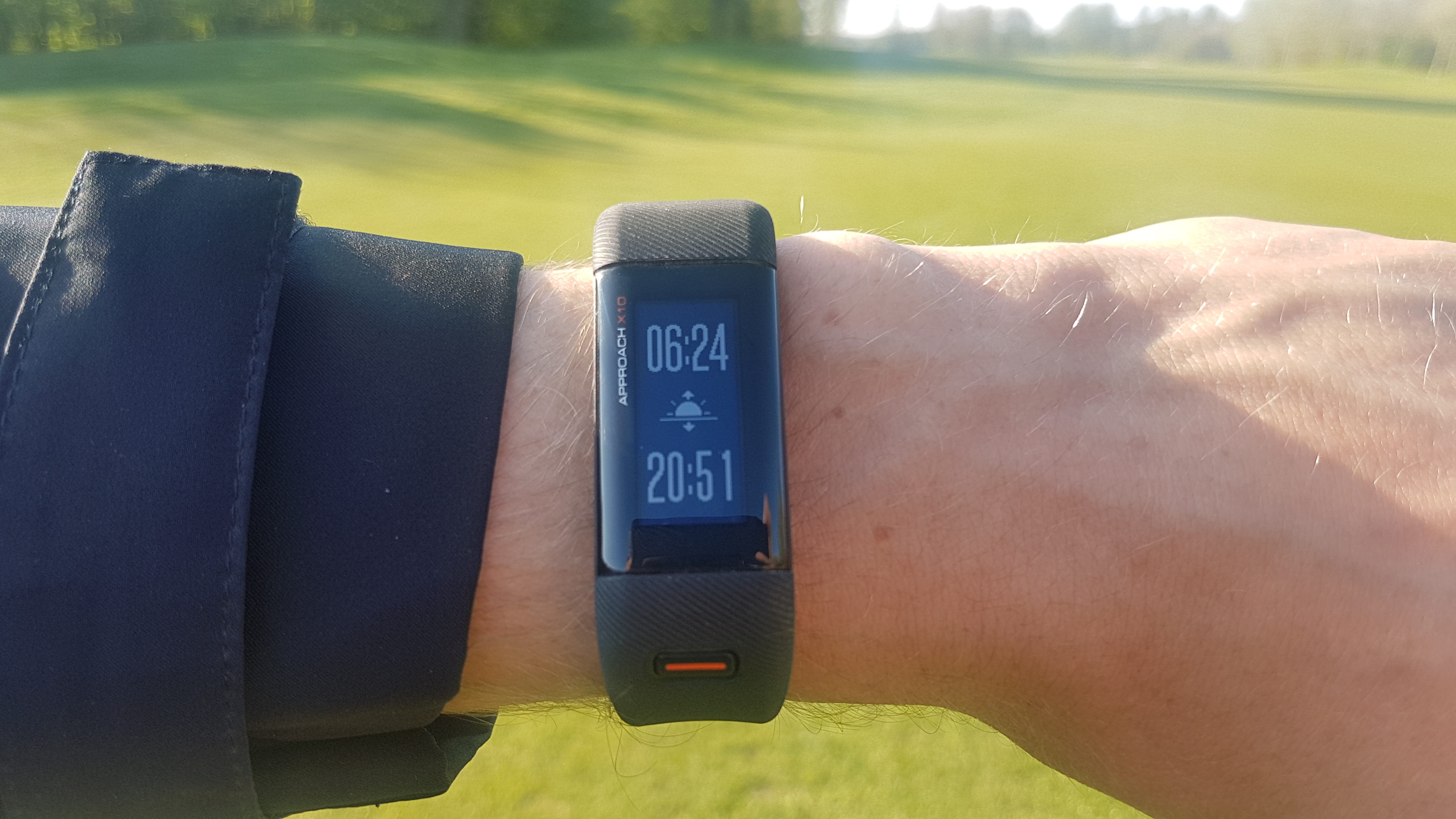 Garmin zegt dat de batterij van de X10 12 uur meegaat in GPS-modus. Of het horloge na één volle oplaadbeurt 12 uur meegaat weten we niet, maar na 36 holes was er nog een kwart aan batterij over. Een prima prestatie. In de horlogemodus (datum/tijd) – dus als de GPS uit staat - gaat de batterij tot 23 dagen mee. Tip: als je weet dat je over een paar minuten op de tee moet staan, zorg dan dat je het horloge alvast aanzet, want het apparaatje heeft aardig wat tijd nodig om satellieten te vinden en je locatie te bepalen.