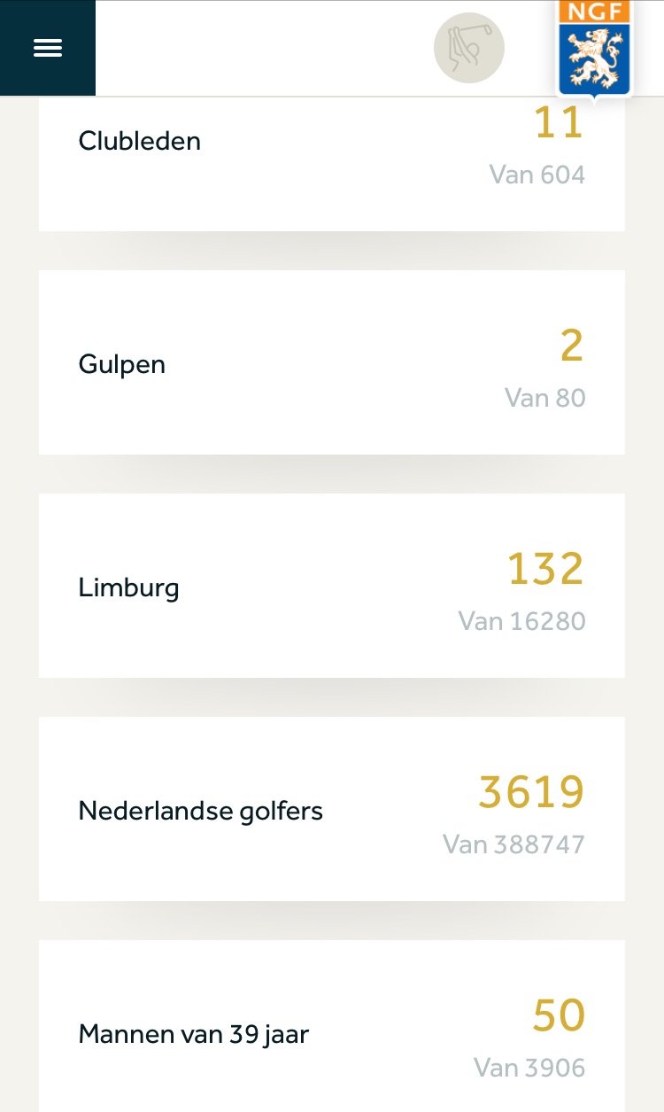 • De Handicapranking geeft aan hoe goed je bent ten opzichte van andere golfers bij je club, in je woonplaats, provincie en in heel Nederland.