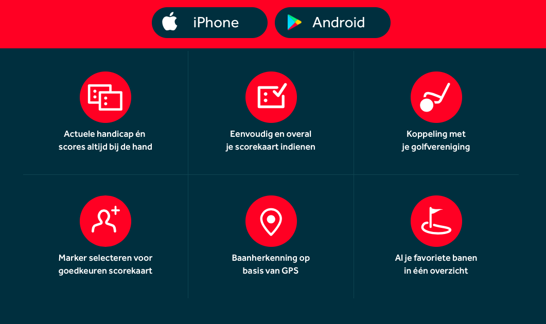 De voornaamste reden dat golfers de app gebruiken, is de laagdrempeligheid van het invoeren van een scorekaart via een smartphone. Overal en altijd, op welke baan in Nederland dan ook. Voert een golfer een qualifying kaart in en keurt zijn/haar marker die goed, dan berekent de app meteen de nieuwe handicap. De kaart wordt direct naar de club gestuurd zodat zij de kaart kan controleren. Daarnaast is er de handicapranking waarop golfers hun handicap kunnen vergelijken met vrienden, mensen in de buurt en zelfs in heel Nederland! Ook houdt de app gespeelde scorekaarten bij en de laatste baaninformatie.