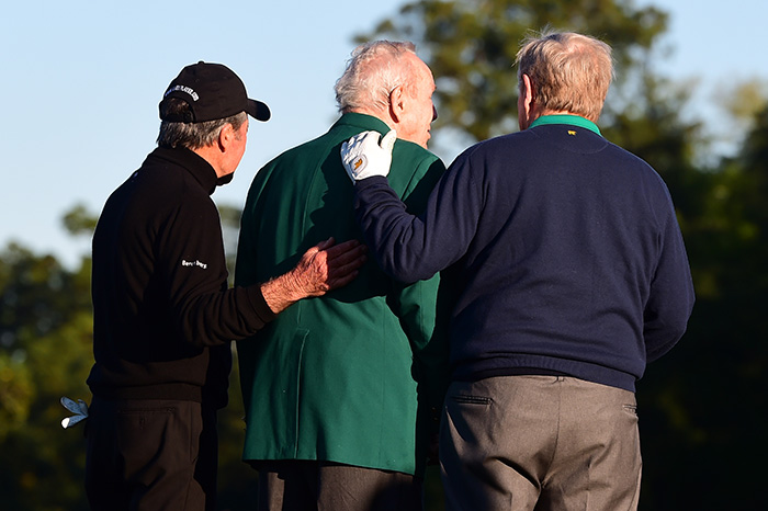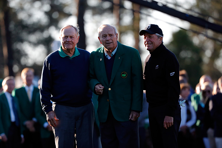 Jack Nicklaus, Arnold Palmer en Gary Player op de Masters