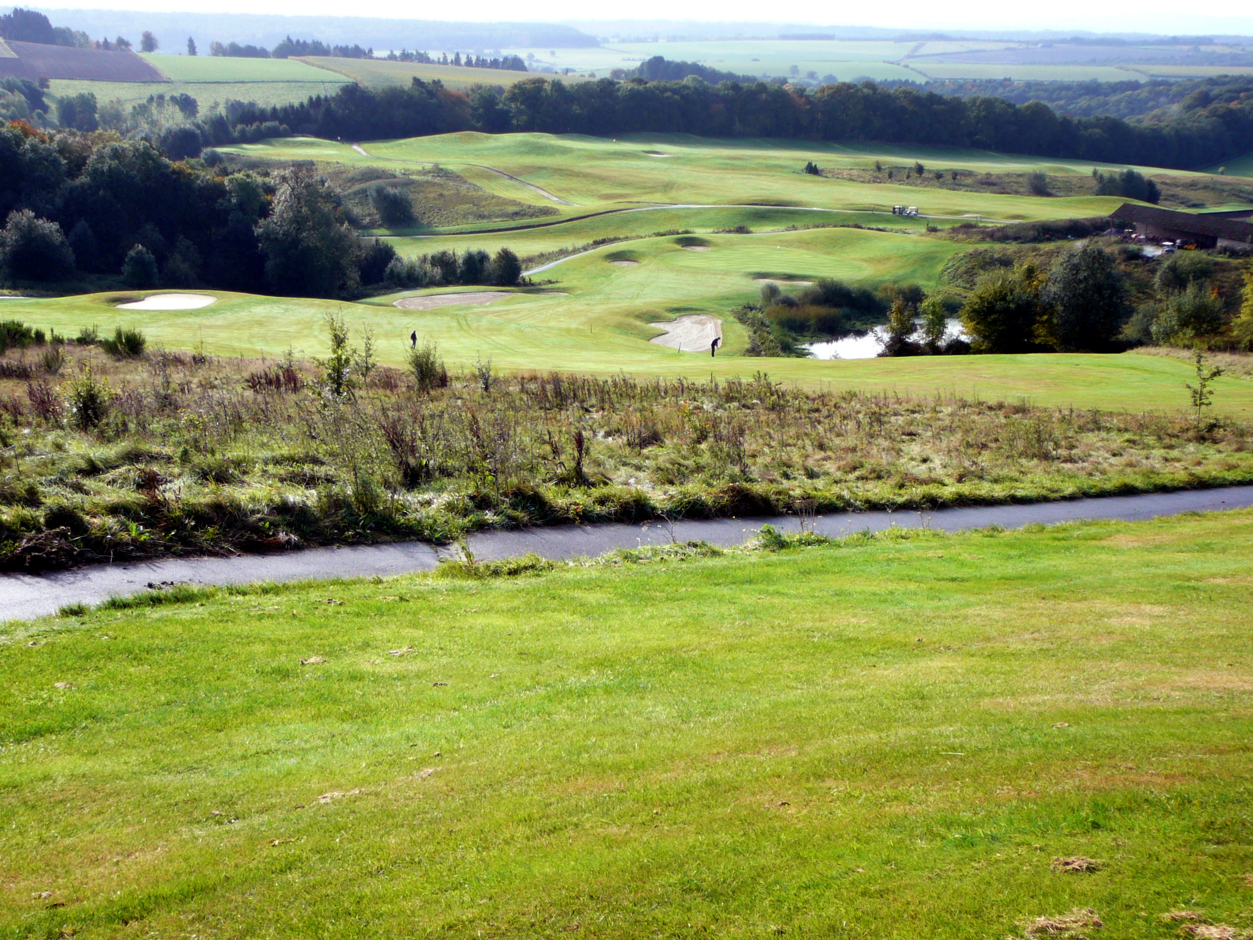 Ronde 2: Five Nations Golf Club. Vijftien kilometer ten westen van Durbuy vind je deze baan. De tweede negen holes zijn het leukst inclusief de knotsgekke dertiende hole, 118 meter lang en voor mijn gevoel 118 meter naar beneden.