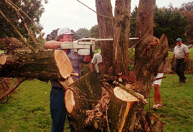 Voor de fotografen deed The Walrus ook nog even zijn slag uit 1987 na, met handdoekje natuurlijk. Een van de foto's waarop The Walrus de boom omzaagde verscheen op de voorkant van de krant USA Today.