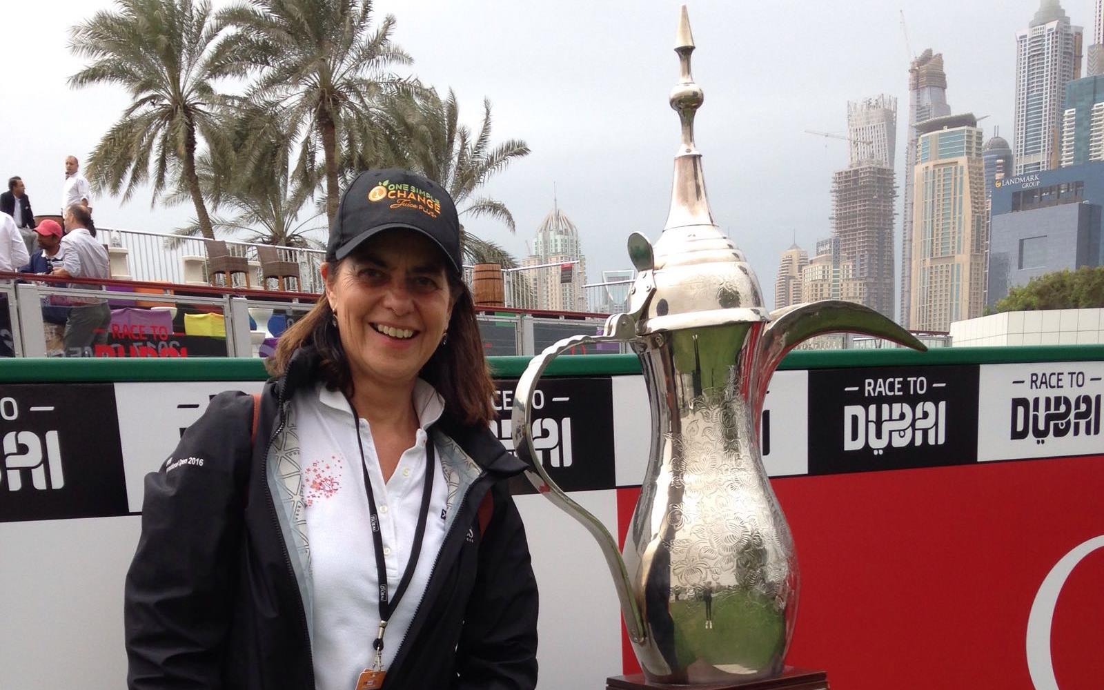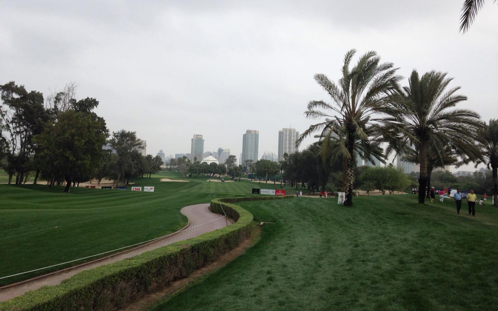 Alleen was ik even vergeten dat de vrijdag in Dubai een 'zondag' is. Vrije dag dus en de metro reed pas vanaf 11.00 uur in de ochtend! De extra tijd die ik ingecalculeerd had, bleek niet nodig. Per taxi belandde ik veel te vroeg op het golfterrein maar dat leverde wel een mooi plaatje op van ontwakende skyscrapers!
