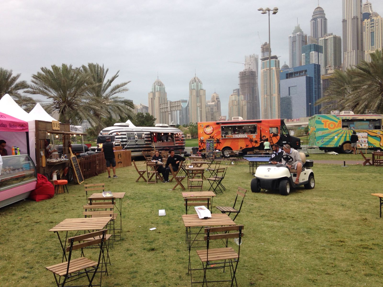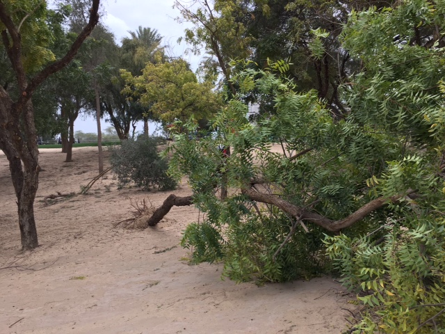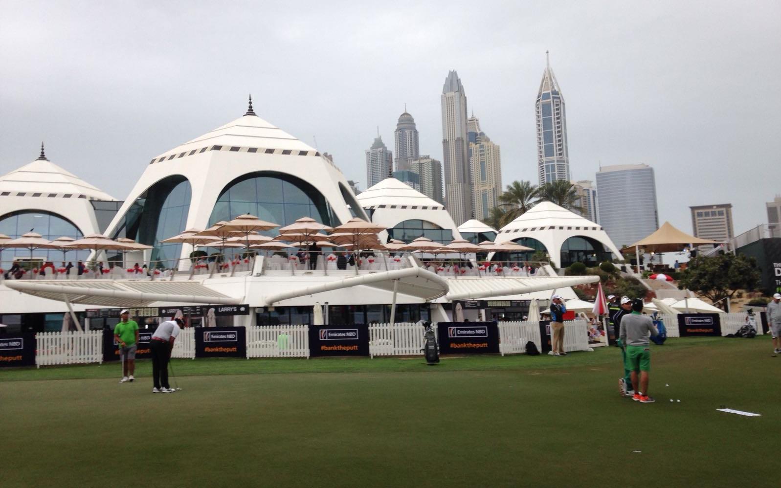 Het is wel een aparte gewaarwording, dat rare weer vandaag. De expats hebben dit ook nog nooit of zelden meegemaakt. Zelfs een bouwkraan waaide om en dat was de 'talk of the day'. Bars en eetplekken op het terrein en het clubhuis deden goede zaken, want voor een islamitisch land, weten ze ‘m hier goed te raken. Heineken als biersponsor zorgde daarbij voor een Nederlands tintje.