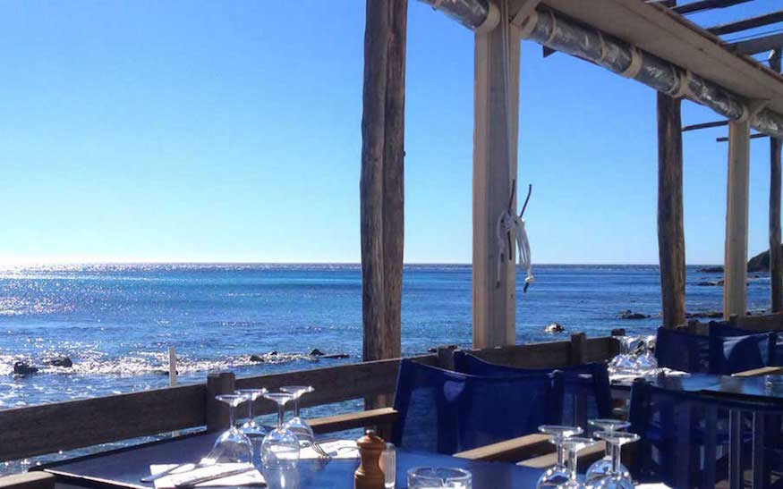 Voor het diner: Gorges de Pennafort, net buiten het gehucht Callas, op het verwarmde terras met prachtig uitzicht op de verlichte rode rotsen van deze verscholen gorges. Of met de voeten in het zand op Plage des Salins: de heerlijkste vis, ondergaande zon en onbekende voortreffelijke witte wijn.