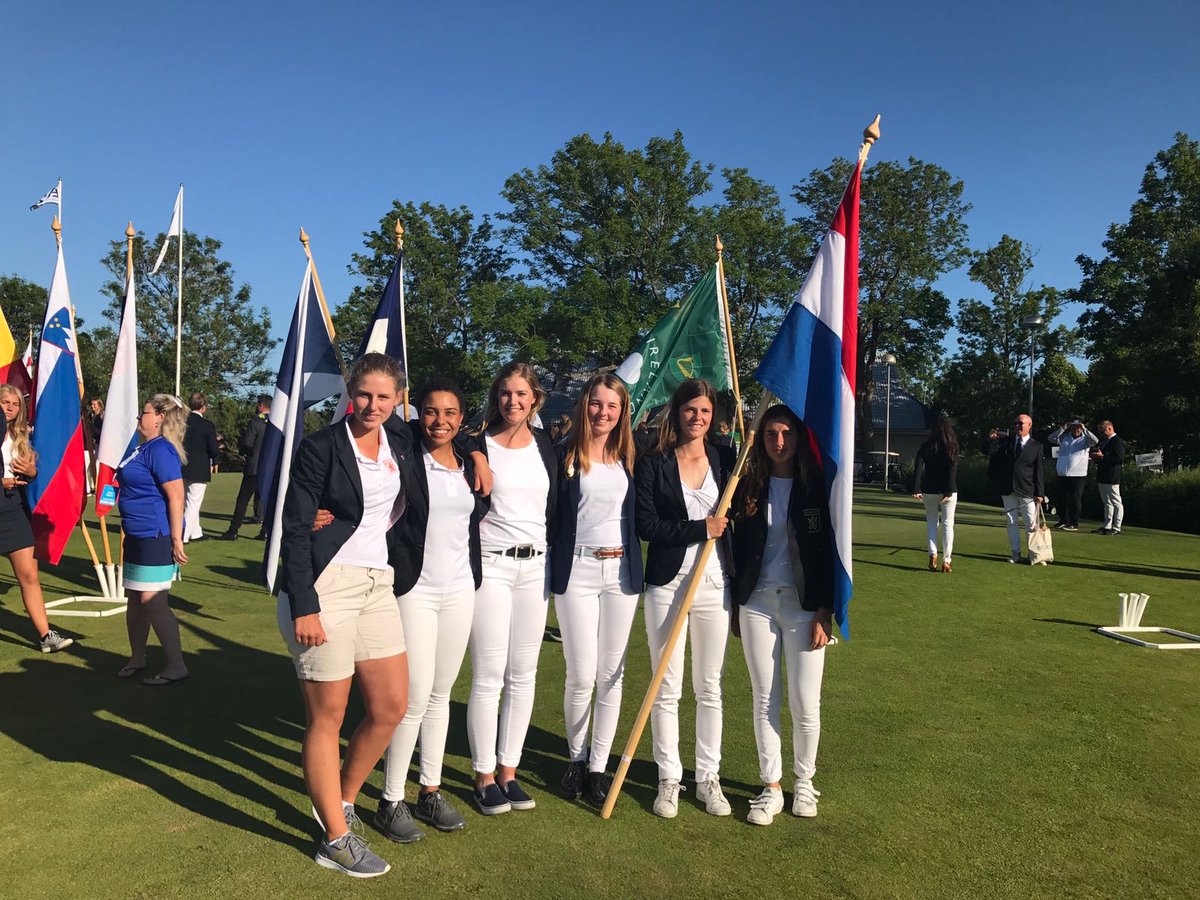 Het Nederlandse damesteam plaatste zich in de strokeplay-kwalificatie met een zevende plaats voor Flight A. Maar donderdag in de kwartfinale werd verloren van Italië.
