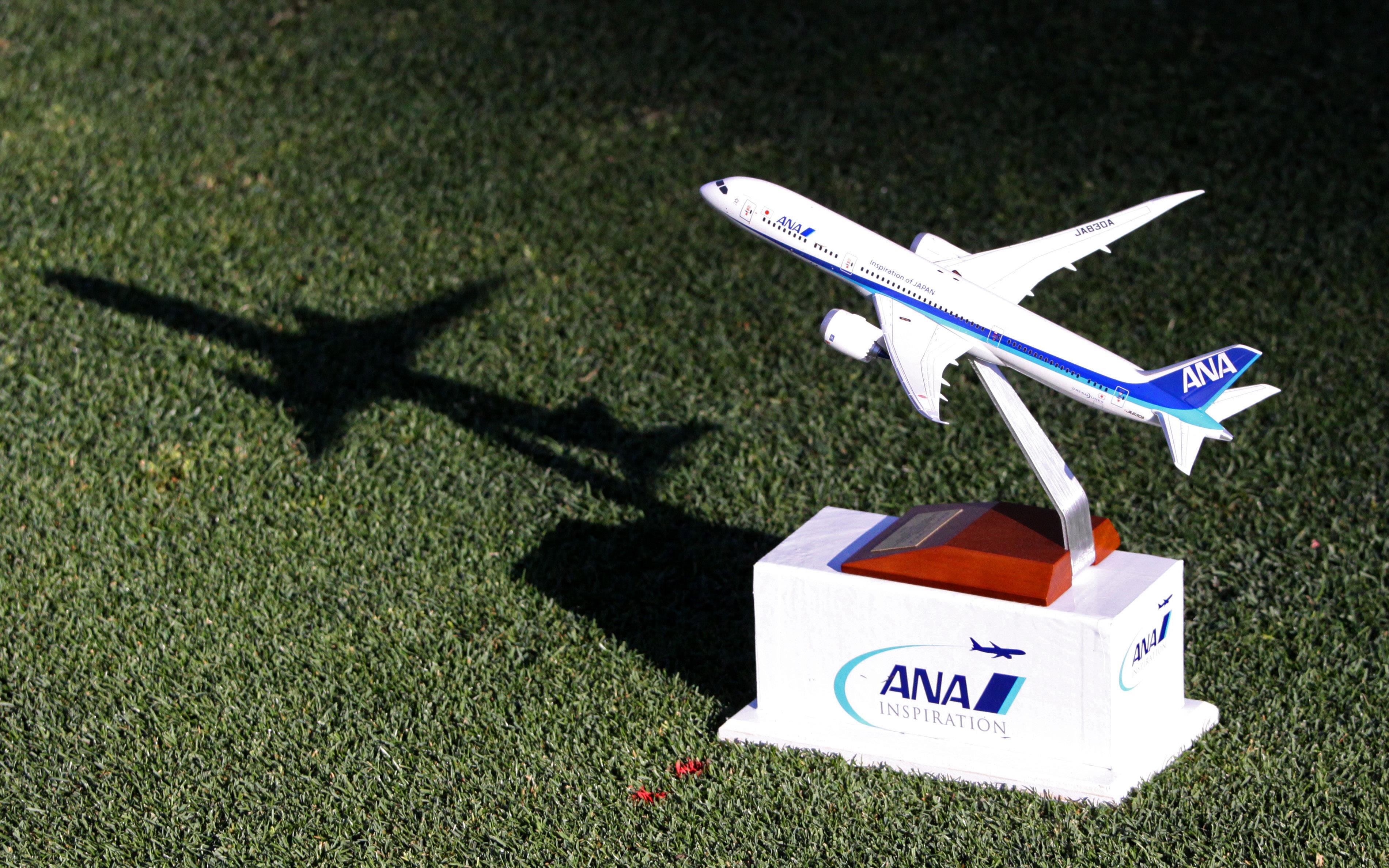 Het is niet altijd even origineel want bij toernooien van vliegtuigmaatschappijen staat bijna altijd een modelvliegtuigje op de afslagplaats.