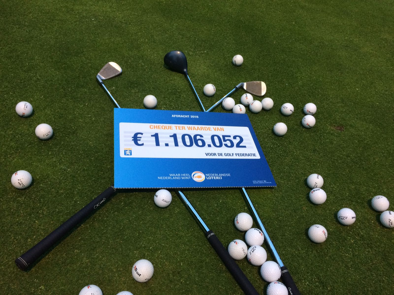 Op vrijdag 2 juni ontving de Koninklijke Nederlandse Golf Federatie de officiële cheque t.w.v. € 1.106.052. Met deze bijdrage kan de NGF verder haar doelen nastreven zoals beschreven in het Meerjaren Beleidsplan. Met name de plannen op het gebied van Sportief Beleid en daarmee het vergroten van de sportparticipatie van jeugd, families, senioren en voor golfers et een fysieke beperking, kunnen verder worden doorgevoerd alsmede de groene ambities op het gebied van een duurzame ontwikkeling in golf.