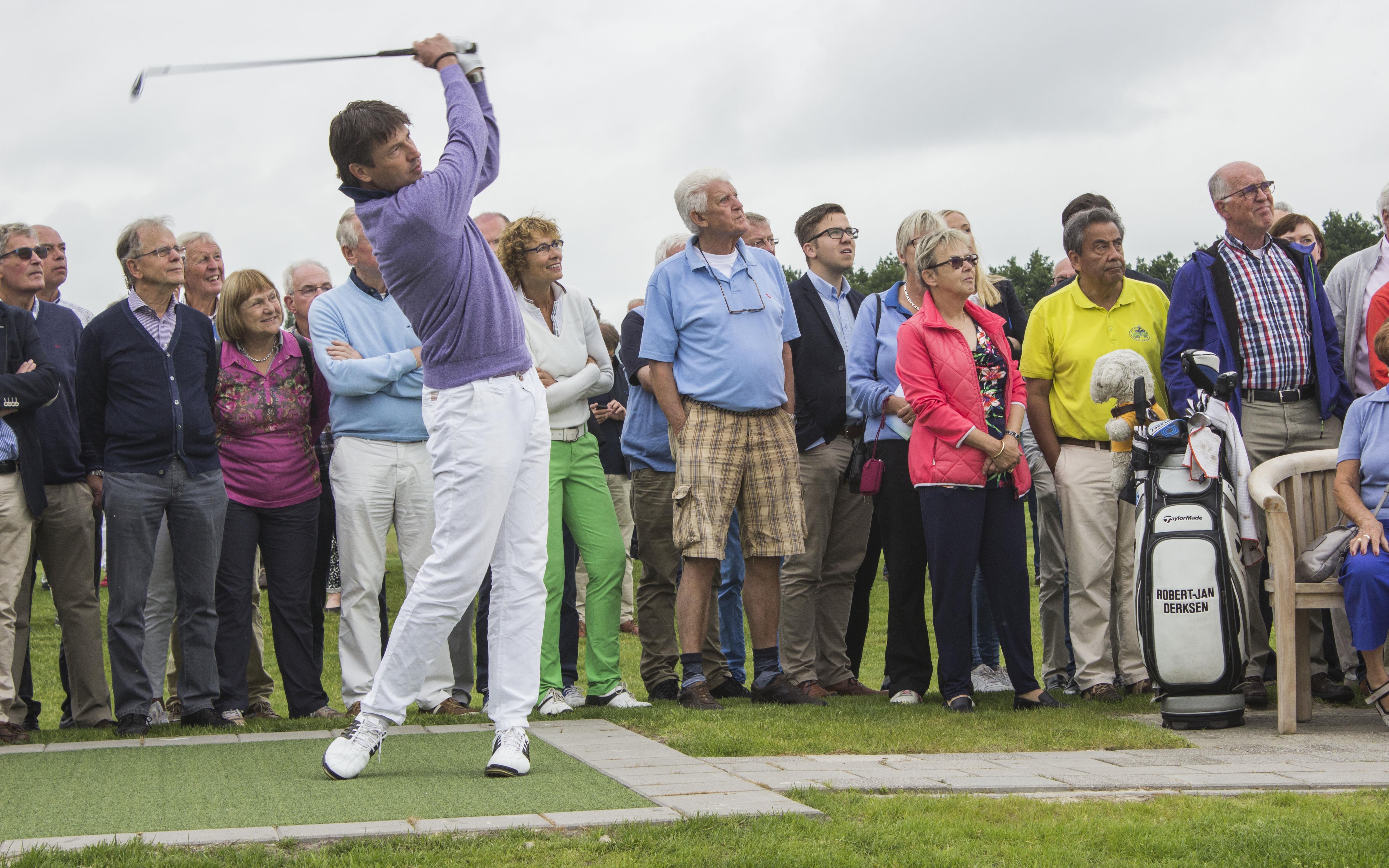 Robert-Jan Derksen heeft deze qualifying baan op zaterdag 17 juni geopend. De oud-European Tour-speler Derksen liet op enthousiaste wijze zien hoe hij alle greens vanaf de centrale afslagplaats kon bereiken.