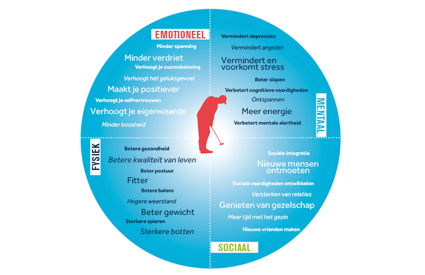 Als golfer ben je bovendien lekker buiten, vaak in een mooie omgeving en onder de mensen.