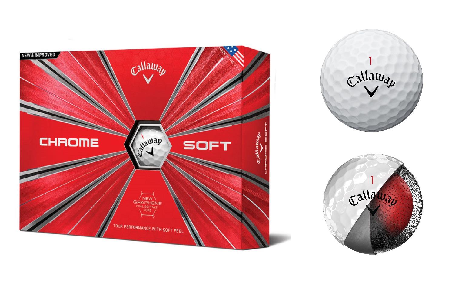 Soft en Chrome Soft X. Volgens Callaway is het gebruik van grafeen een gamechanger. Het één atoom dikke nanodeeltje is gebruikt in de buitenste laag van de kern om het verschil in compressie tussen de buiten- en binnenkern te verhogen. Het verschil in lagen in een golfbal – in totaal zijn het er vier in de Chrome Soft – zorgt ervoor dat de bal anders reageert op een wedge dan op een driver. Concreet: de Graphene Dual SoftFast Core in de Chrome Soft levert een hoge balvlucht met een lage spin bij lange slagen (drives, lange ijzers) en ligt sneller stil bij de korte slagen (approaches, pitches en chips). Dit is belangrijk want de prestatie van de moderne golfballen wordt getoetst op deze twee elementen: de capaciteit om veel te spinnen bij korte slagen en minder te spinnen bij lange slagen. Net als alle andere premium golfballen hebben de nieuwe Callaway ballen een zachte buitenste laag van urethaan voor de spin rond de greens.