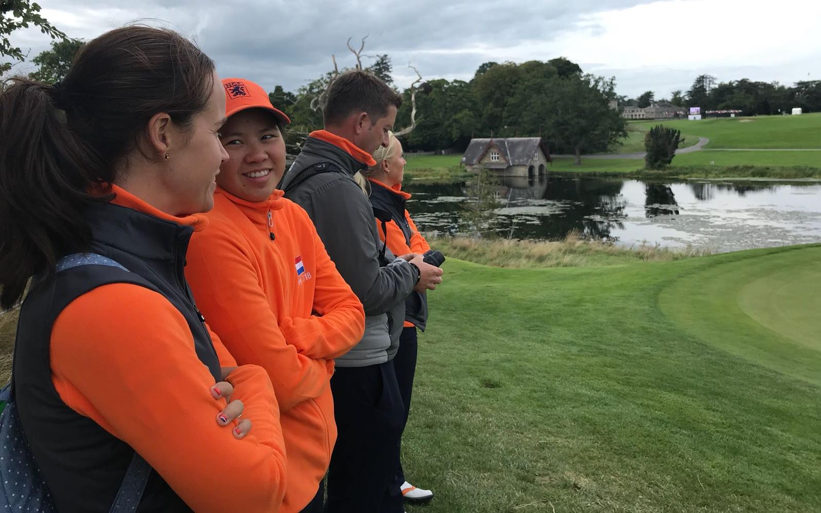 Niels Kraaij, samen met Dewi Claire Schreefel coach van Oranje, toonde zich niet ontevreden. 'Er had iets meer ingezeten, maar met +3 hebben we het niet slecht gedaan. Zhen was met gelijk par gewoon goed. Op hole 18 maakte ze nog een birdie om op gelijk par te eindigen, dat was een bonus. Romy heeft heel hard gevochten. Ze sloeg een paar mindere ijzers maar wist toch een +3 binnen te brengen. Dewi had het zwaar, ze had nog last van een jetlag en ze moest natuurlijk wennen aan de nieuwe clubs.'