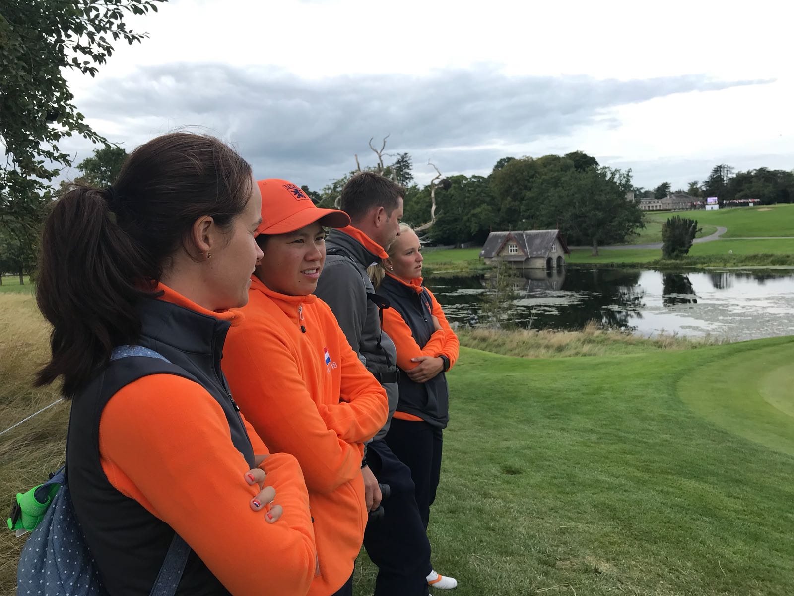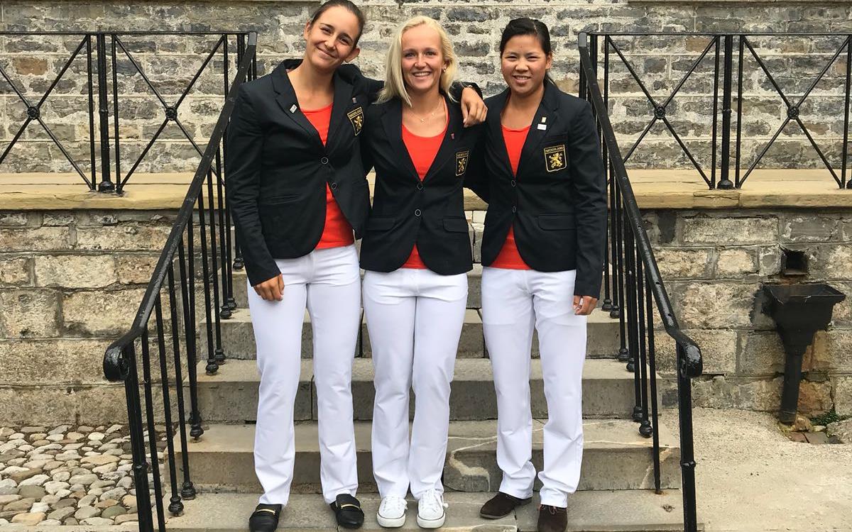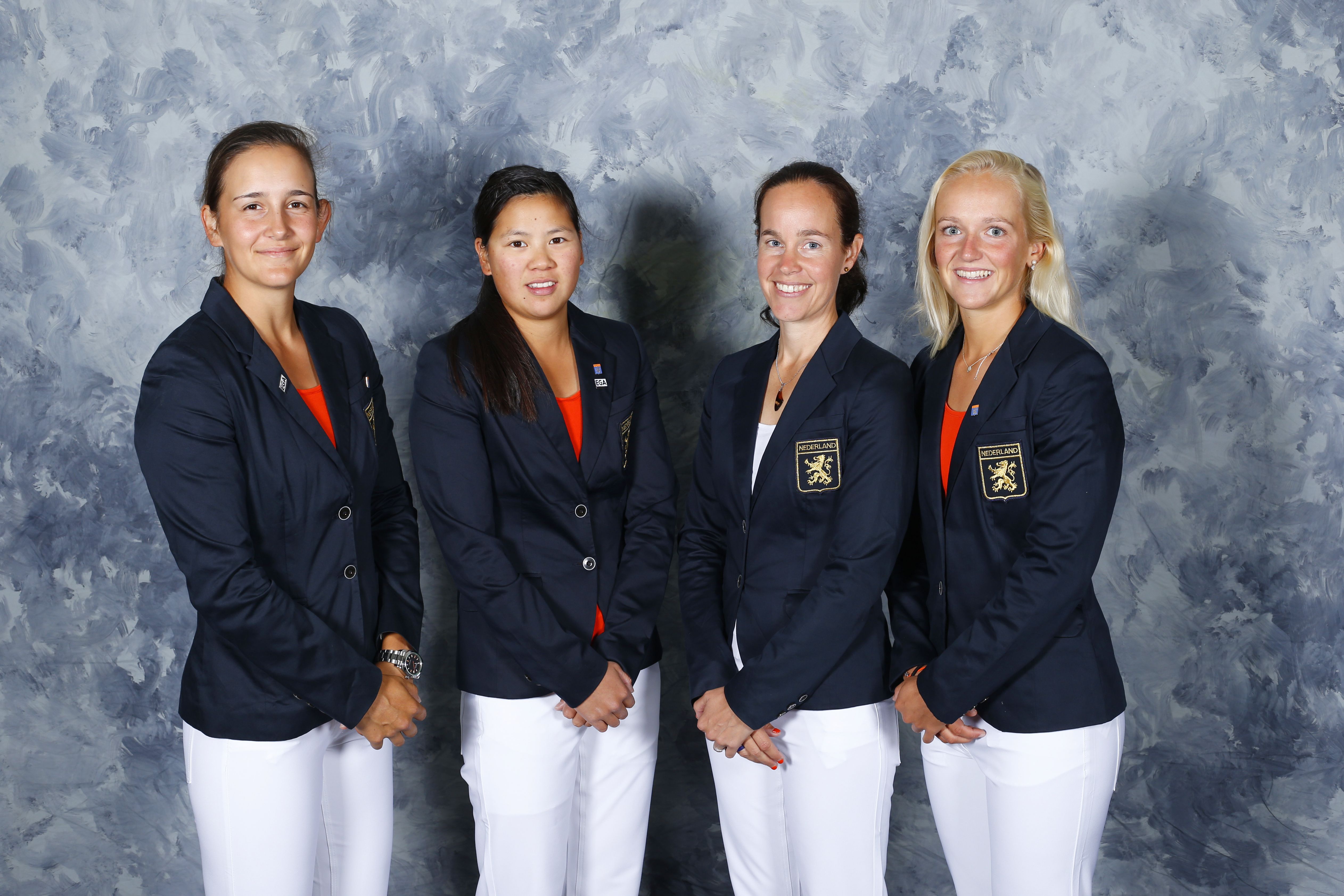 Het Nederlandse team - Romy Meekers, Zhen Bontan en Dewi Weber - was na dag één gedeeld 18de. Op de Montgomerie Course van Carton House maakte Bontan toen 72 (par) en Meekers 75. De derde score (77 van Dewi Weber) mocht weggestreept worden.