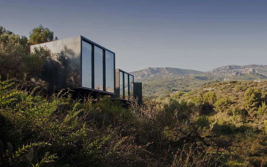 De minimalistische verblijven hebben grote ramen waardoor je ten volle van het uitzicht op de Guadalest Vallei en de ondergaande zon kunt genieten. De prefab units zijn het resultaat van duurzame architectuur; dankzij een gepatenteerd en uniek modulair systeem kunnen ze opgevouwen worden en, indien nodig, opnieuw gebruikt worden. Ze staan op palen zodat de vegetatie zo min mogelijk wordt aangetast. Het restaurant maakt alleen gebruik van natuurlijke en lokale producten.