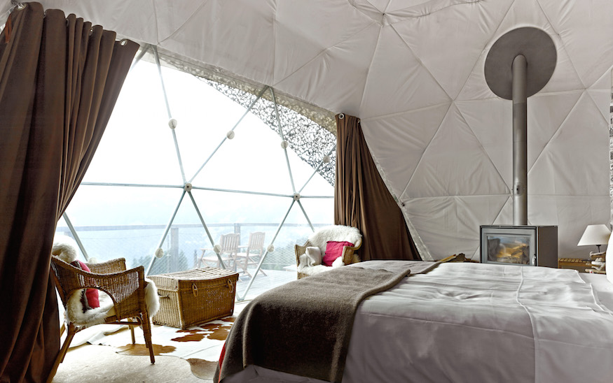 Middenin de Zwitserse Alpen ligt een aantal ecovriendelijke pods; in de winter bepakt met sneeuw, in de zomer zit er een camouflagenet om de koepelvormige hotelkamers waardoor die één worden met de omgeving. De pods verbruiken weinig water en elektriciteit en zijn gebouwd van recyclebare materialen. Zo zijn de muren van transparant pvc. Vanaf de receptie moet je twintig minuten wandelen om bij de pods te komen met een uniek en spectaculair uitzicht als resultaat.