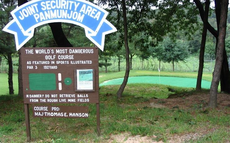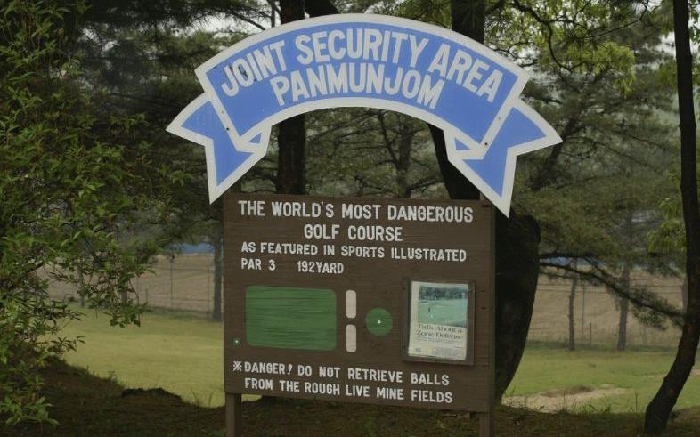 De hole ligt er al decennia en de naam 'World's Most Dangerous Hole/Golf Course' is in de Koude Oorlog bedacht door Sports Illustrated. De hole is zeker gevaarlijk want de par 3 ligt tussen mijnenvelden. En je weet ook nooit wat de Noord-Koreaanse dictator Kim Jong-un van plan is.