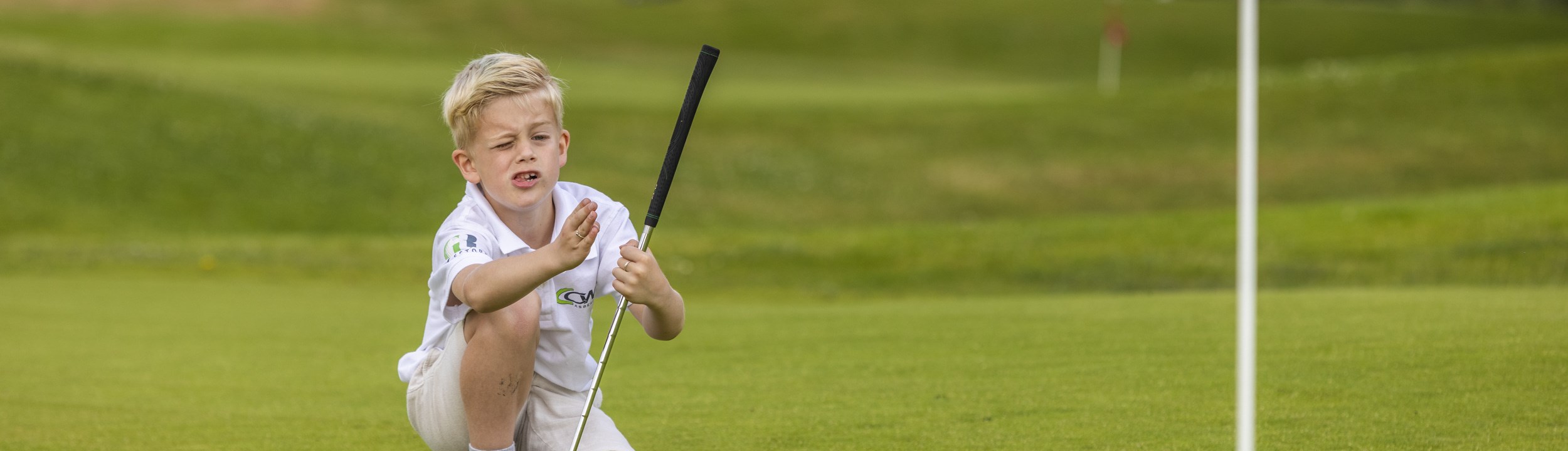 Als je kinderen willen meedoen aan de ronde, maar nog te jong zijn om zelf te spelen, probeer hen dan in fases mee te laten doen. Laat hen zonder bal swingen op de tee. Daarna leg je een extra bal op de green om te putten. Als het putten beter gaat, kun je doorgaan met langere putts, chips en picthes, bijvoorbeeld vanaf het punt waar jij je laatste pitch gaat maken. Eventueel kun je ze vanaf de fairway laten spelen en de tweede helft van de hole mee laten doen.