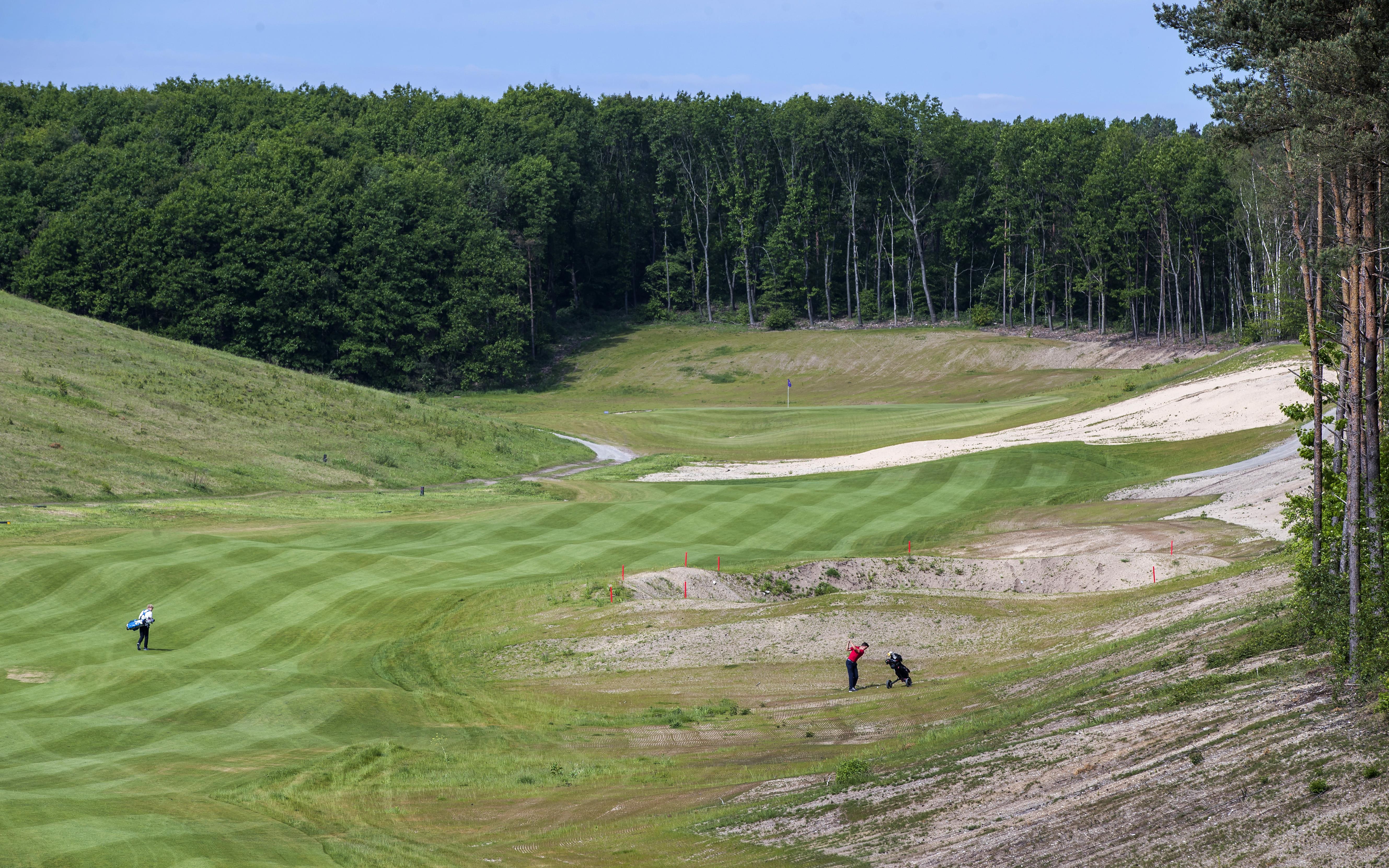 Maar volgens Bikker zullen gastspelers ook genieten als ze op één dag alleen Blauw of Rood spelen. “Je komt op deze baan maximaal aan je trekken. Hij speelt heerlijk, veel afwisseling, hoogteverschillen, moeilijke holes afgewisseld met holes waar je kunt scoren. En de wind komt zeker aan bod; je speelt soms in de luwte van de vallei, maar op het plateau erboven heeft de wind vrij spel. Dit is een linksbaan omgeven door bossen. En negen holes spelen is helemaal van deze tijd. Dan is The Links Valley een perfect voorbeeld hoe het écht de moeite waard kan zijn voor negen holes even in de auto te zitten. Het concept is commercieel slim want naar deze baan wil je terug. Om ’m omgekeerd te spelen maar zeker ook om de kant die je al gespeeld hebt, nog een keer over te doen.”