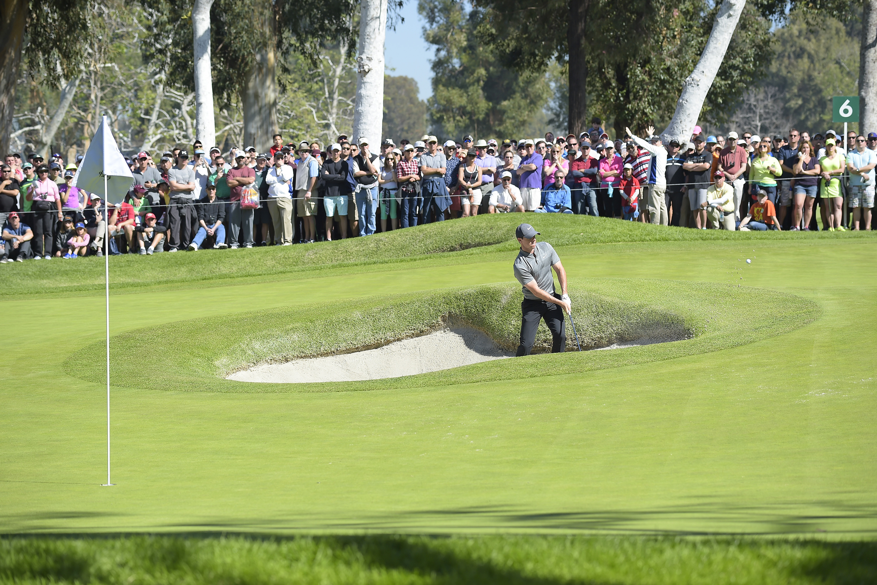 Rory found the bunker in the middle of the sixth green...