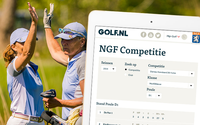 De nieuwe url van de website is golf.nl/ngf-competitie. De lay-out van de pagina is veranderd en daarmee is de website nog overzichtelijker geworden op elk device (website, mobiel, iPad). De functionaliteiten blijven hetzelfde maar de zoekfunctie is geoptimaliseerd.