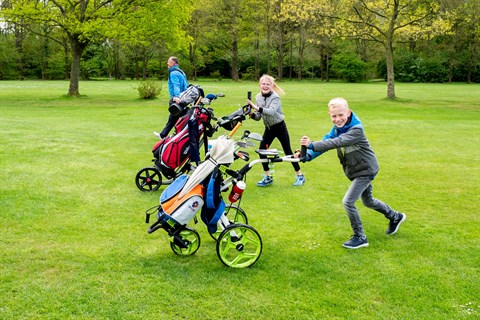 Ook op de golfbaan De Dunes in Zandvoort is het een drukte van jewelste. Kinderen worden opgevangen met speciale golfmiddagen.
