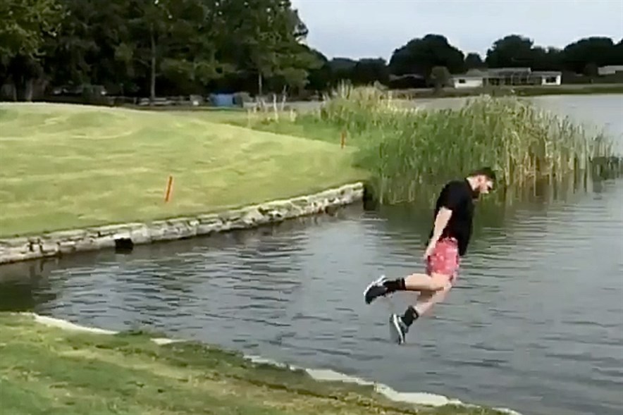 Golfers laten zich niet door een waterhindernisje meer of minder uit het veld slaan.