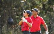 Je kon er op wachten: zo vader zo zoon. Ook Charlie, de kleine Woods, beheerst de twirl inmiddels tot in de perfectie.