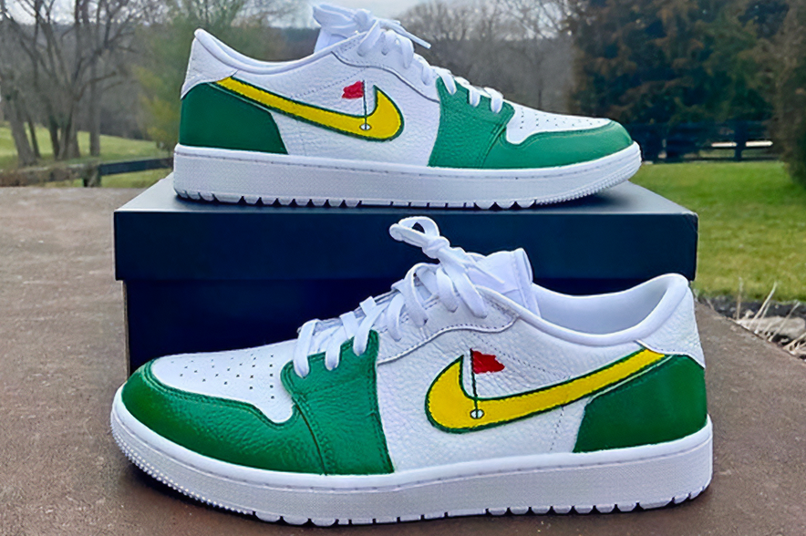 Ben jij op zoek naar unieke golfschoenen? Zo'n paar waarvan je kunt zeggen: "Hier zijn echt weinig exemplaren van gemaakt, ze zijn handbeschilderd." Davis Cole is op Instagram beter bekend als de @kustom._.king. Hij beschildert op verzoek spierwitte Nike Jordan Golf Shoes in het door jou gewenste design. En deze week maakt zijn penseel overuren, want de bestellingen voor een speciale Masterseditie zijn niet meer op een hand te tellen.