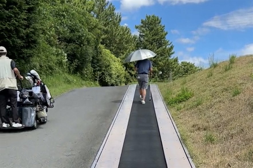 For a respite, 2 holes offer these automated golf carts for green to tee uphill walks. pic.twitter.com/aevMmXUUsB