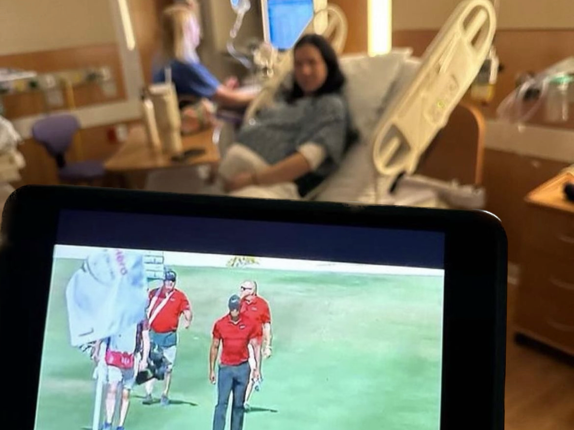Weleens gehoord van ‘hij is getrouwd met het spelletje’? Nou, wat dacht je van deze. Terwijl de bevalling van zijn vrouw bijna wordt ingeleid, wordt de golfer even afgeleid door het rood van Tiger…