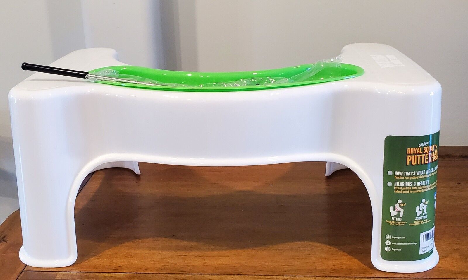 Nog wel te koop is de Potty Putter, de versie zonder minuscule green op een verhoginkje. We weten natuurlijk niet wie bij jullie thuis zich het langste opsluit in het kleinste kamertje van het huis, maar wij zullen niet beweren dat dit uitsluitend een pot-entieel speeltje is voor mannen.