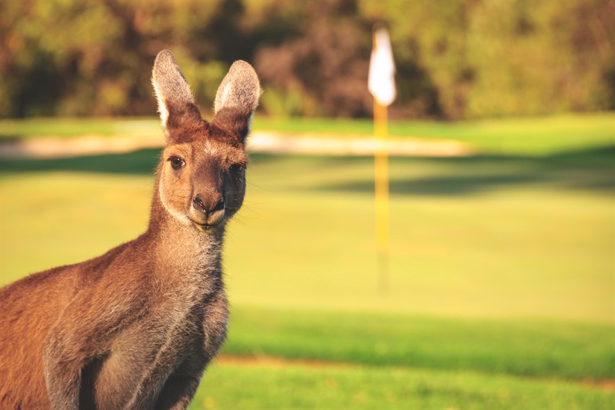 Spurs-sterspeler Harry Kane deelt de beelden van het curieuze tafereel op Instagram. ‘Golf Australia style’, schrijft hij erbij. Zijn teamgenoot, die de opmerkelijke gebeurtenis filmde, is eveneens hoorbaar verrast: ‘Oh my god’, stamelt Maddison.