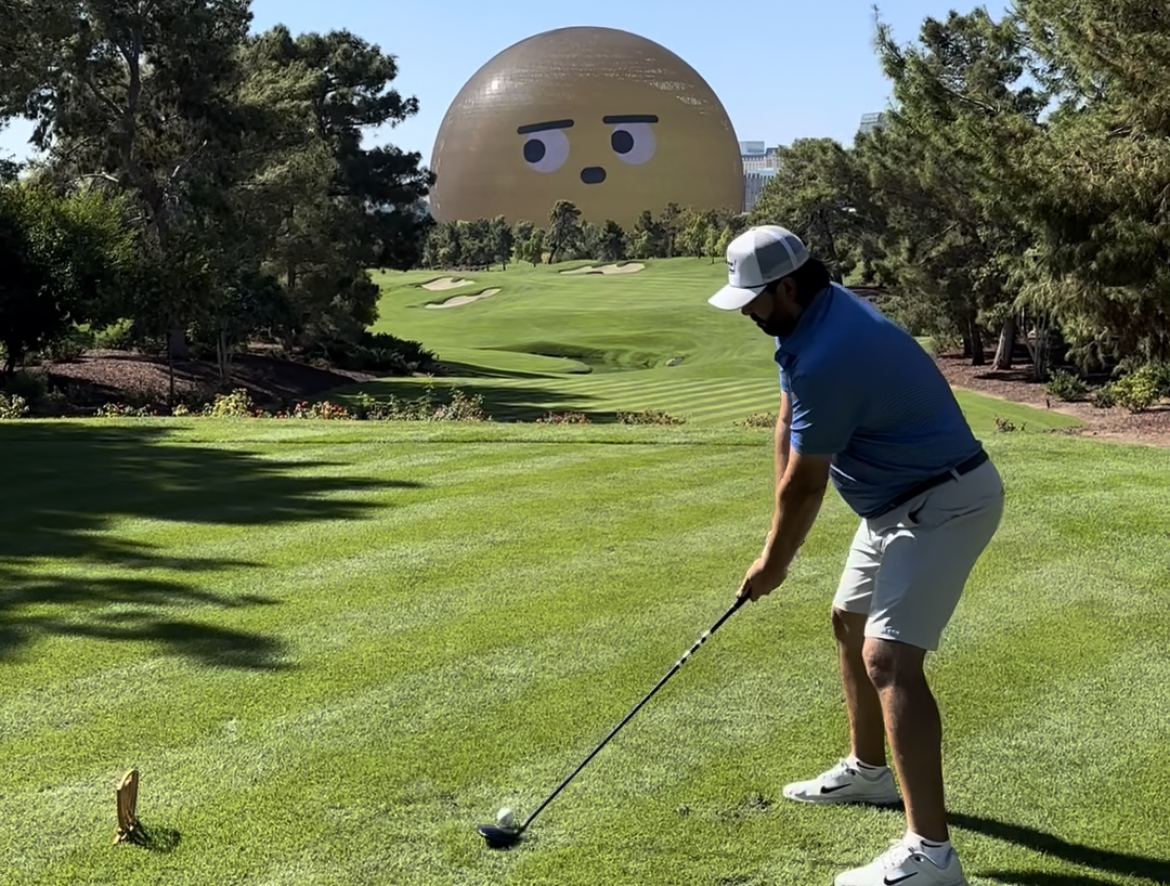 Over het lot tarten gesproken: In Las Vegas trekt de Sphere, een bolvormige entertainment arena met ontelbare schermpjes aan de binnen- en buitenkant, enorm veel bekijks. Maar andersom ook: soms verandert de bol in een bespiedend oog en als je dan op de nabijgelegen Wynn Golf Course wil afslaan, voelt dat toch een beetje raar. Hoe groot is de kans dat jouw drive onder deze omstandigheden een tikkeltje uit de richting vliegt?