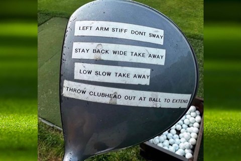 Tot slot, na al die onzin is afsluiten met een tip misschien niet eens zo’n heel slecht idee. Voor wie het soms allemaal niet meer weet op de tee, hebben we een mooi advies. Maak van je driver een ‘spiekbriefje’.