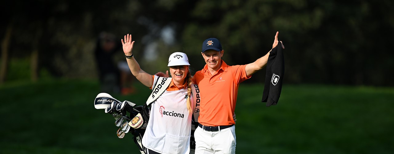 Aan het einde van 2023 had Huizing een functioneringsgesprek met zijn caddie Daniëlle, die tevens zijn vrouw en manager is. Hoe dat afliep? Bekijk de video hierboven.