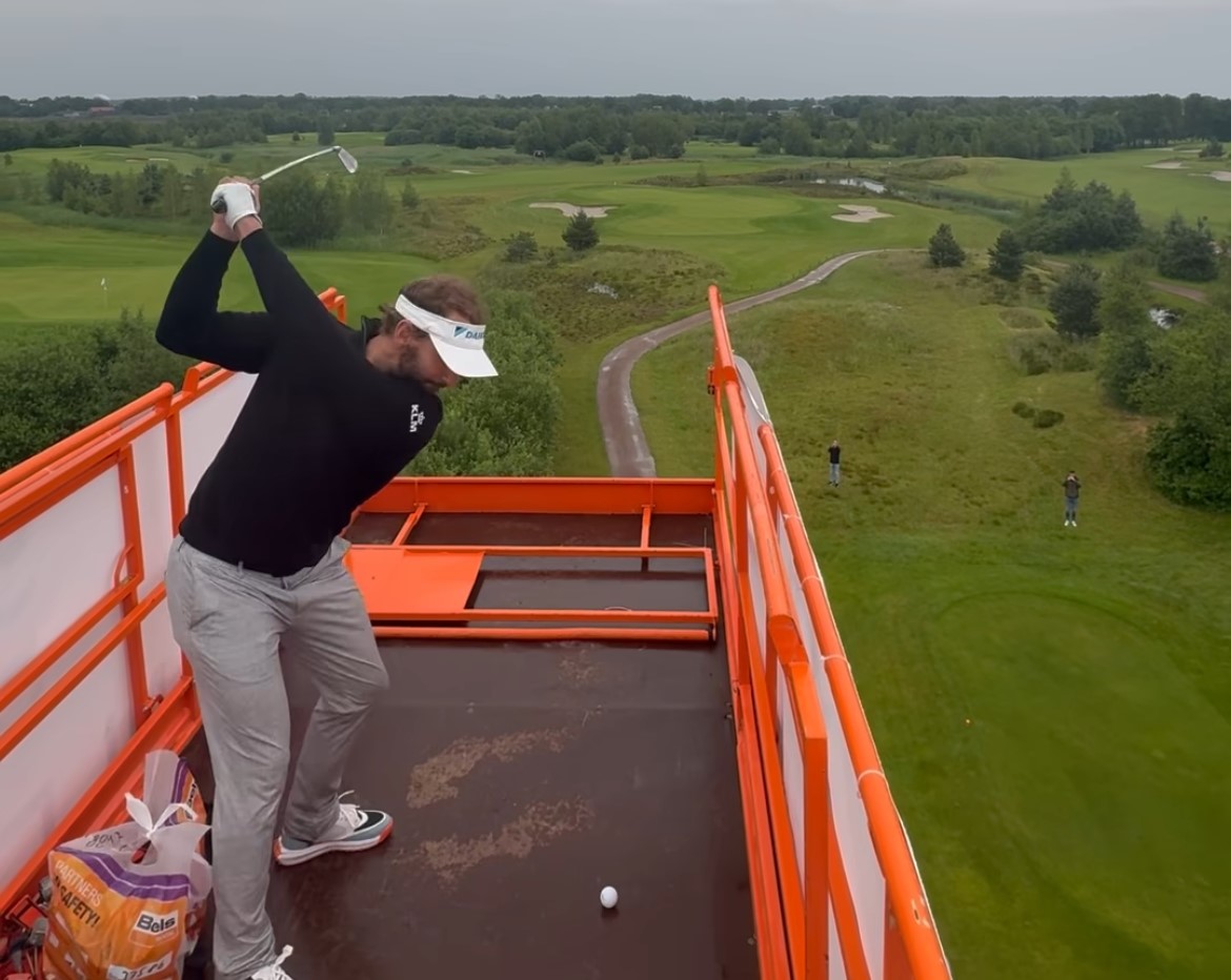 De actie van Daikin vond plaats op Golfbaan het Woold. Luiten ging de lucht in en stond op de 'high tee'. "Komt 'ie, een paar meter van de vlag. Huppakee", zegt de meest succesvolle Nederlandse golfer vanaf grote hoogte. Toch staat hij niet helemaal comfortabel, want hij voegt nog "wiebelding" toe.