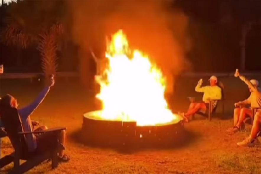 "Jongens, ik weet iets leuks. Zal ik met een brandende golfbal de vuurkorf aansteken?" Het klinkt als een dom idee, maar dit is waarschijnlijk wel de manier waarop het ging. En de 'dappere' poging werd met gejuich ontvangen: