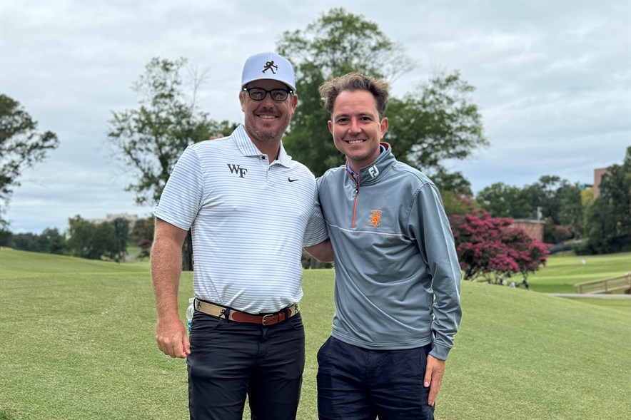 Op de tweede hole van de Army Navy Country Club werd ik tijdens een oefenronde aangesproken. 'Hi, are you from The Netherlands?' Het NGF-logo viel op en we raakten in gesprek. Het bleek de ondersteunend hoofdcoach van Wake Forest te zijn: Ryan Potter. Dat is de universiteit waar Den Dunnen sinds 2022 golf en studie combineert.