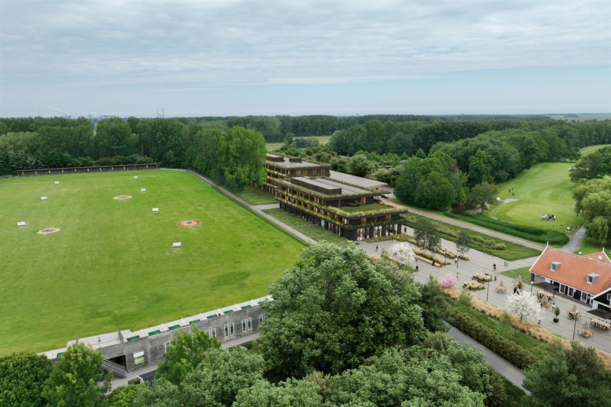 "De ligging van de golfbaan vraagt om natuurinclusief bouwen", vertelt architect Robert Mulder van Mulderblauw architecten. Naast de zorgvuldige inpassing in de omgeving worden de verschillende daken en gevels voorzien van groen. Dit ondersteunt de waterbuffering van hemelwater en de biodiversiteit.”