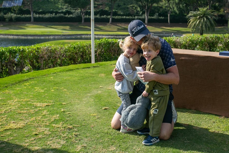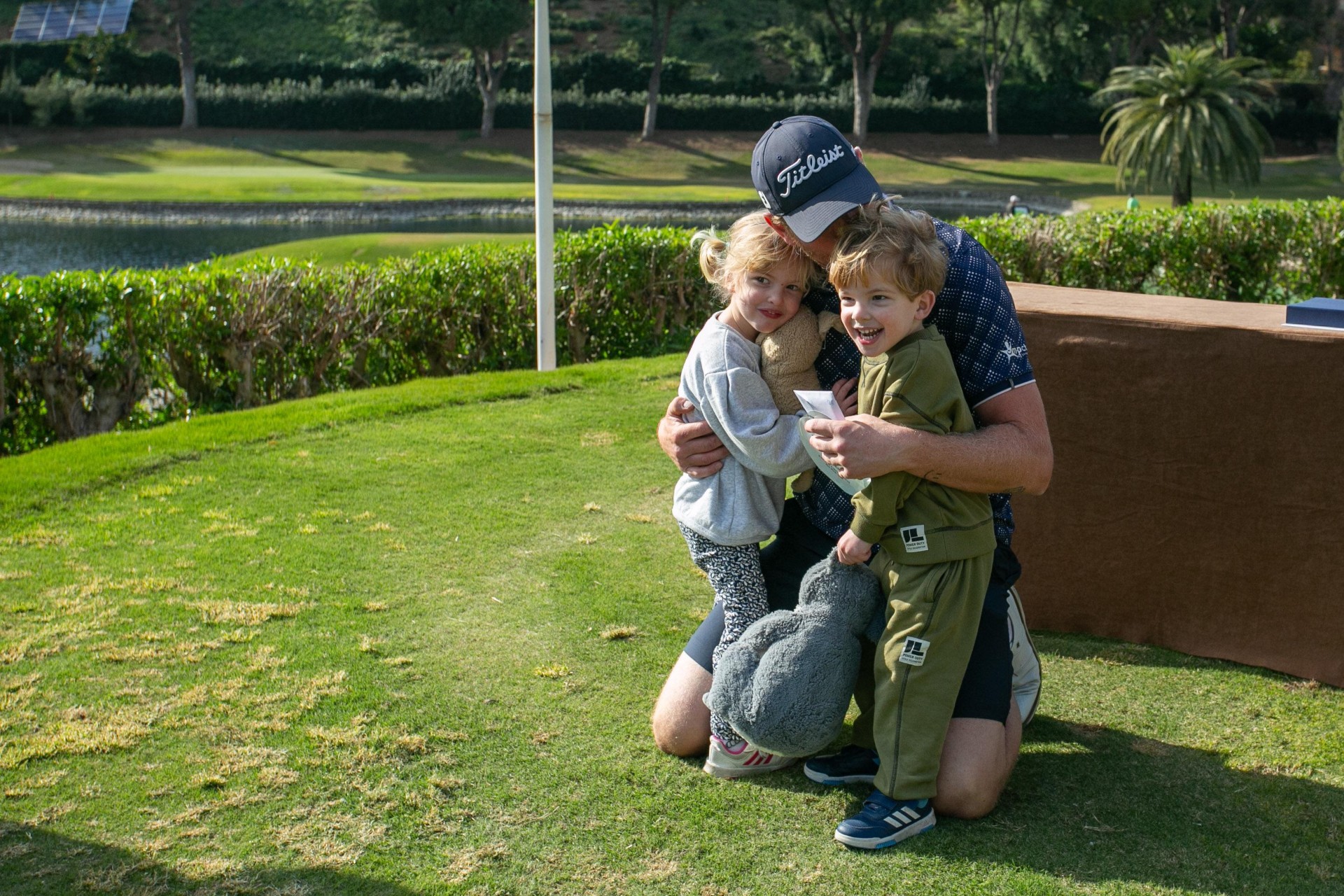 Zijn gezin was de laatste maand ook in Spanje. “De eerste twee maanden vloog ik op en neer, ook om mijn coaches te zien. Dat hebben we in februari niet meer gedaan en zijn we hier verbleven in een huurhuis. Het is fijn om met de familie te zijn, daar ben ik wel gevoelig voor. Nu rende mijn tweeling van 3 de green op. Bij de volgende overwinning hoop ik dat mijn oudste dochter van 14 er ook bij is.”