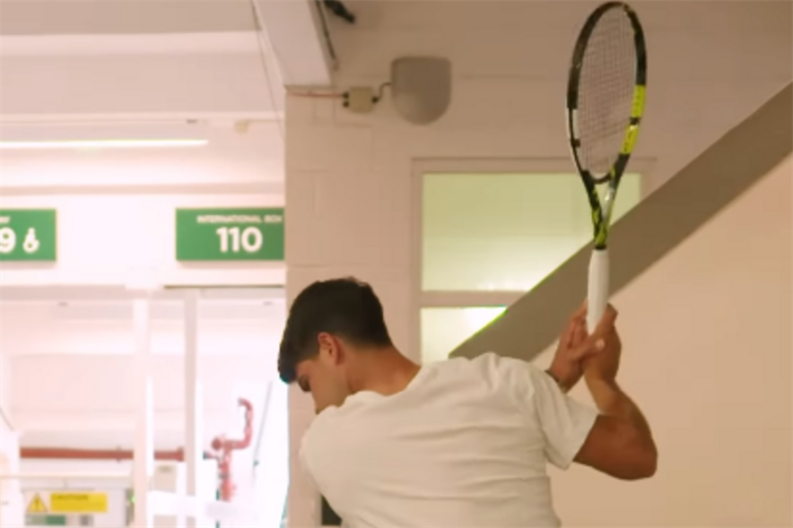 Alcaraz moest even wachten voordat hij het Centre Court mocht betreden op Wimbledon. En als je moet wachten kun je altijd even aan je swing en je puttstroke werken. Zo dacht de 22-jarige Spanjaard ook. Misschien wil hij graag revanche op de inmiddels gestopte Andy Murray, want met hem speelde hij onlangs een ronde mee. Bekijk hier de beelden daarvan.