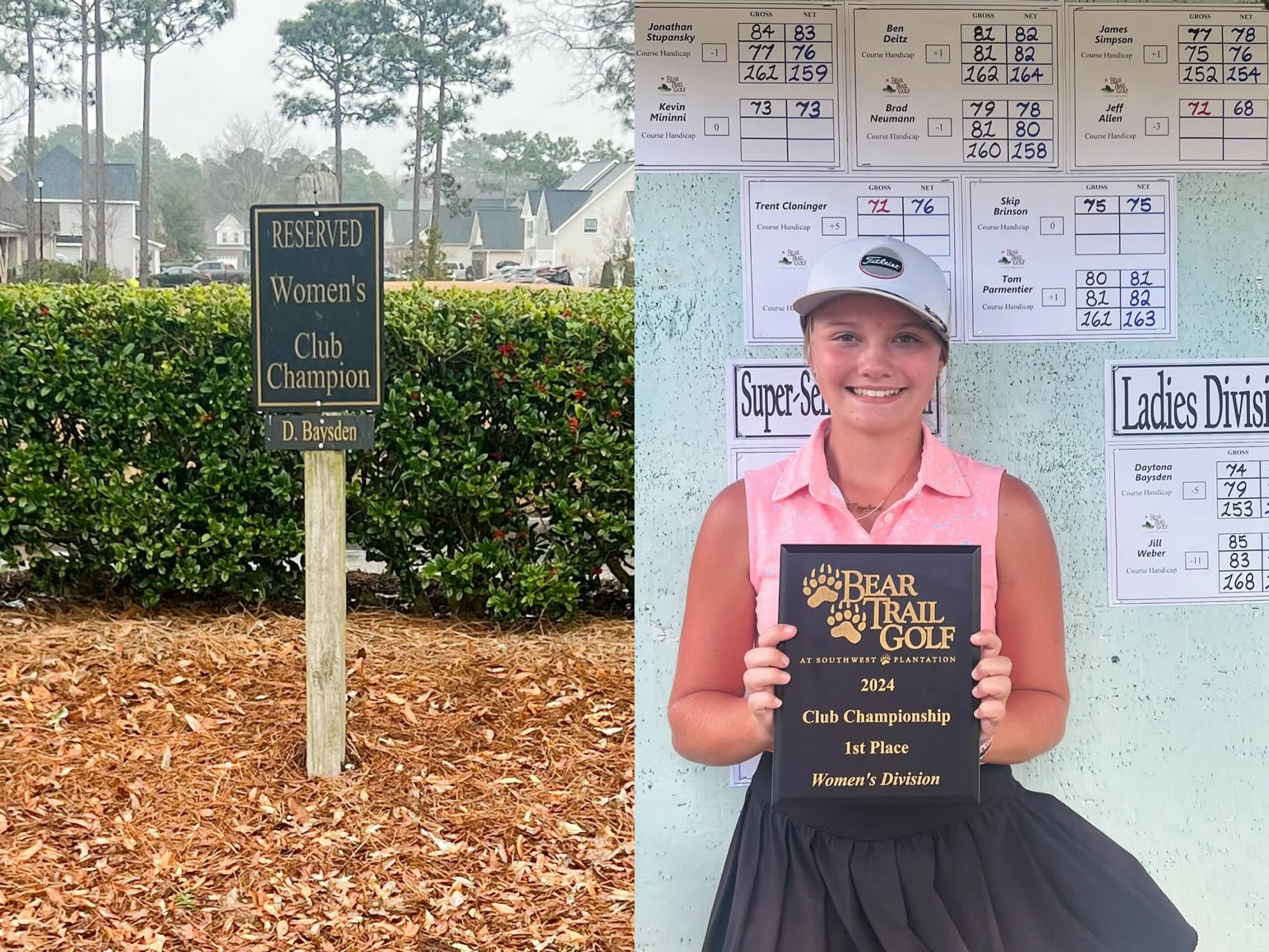 Het is niet uniek dat een jeugdgolfer een clubkampioenschap bij de senioren wint, ook niet in Nederland. Dit verhaal is evenwel overgewaaid uit Amerika. Daytona Baysden won in 2024 het clubkampioenschap bij de vrouwen van Bear Trail Golf Club in North Carolina. Naast eeuwige roem leverde dat haar ook het gebruik van een speciale parkeerplaats bij de club op. Vorige week speelde ze mee in PGA National Club Championship, ook een beloning voor haar clubtitel. Daar viel ze niet echt op in het deelnemersveld, maar haar verhaal wel.