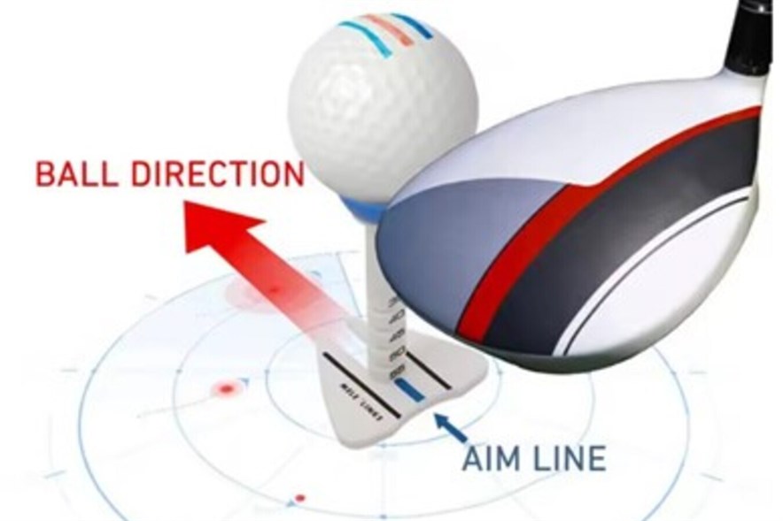 Dus een tee waarop een 'aim line' is aangegeven is niet toegestaan, want die doet meer dan alleen maar de bal van de grond tillen. Die geeft immers ook de speellijn lijn aan.